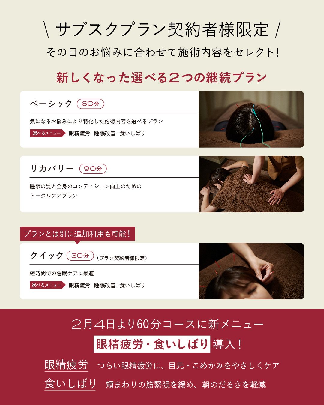 皆様からご相談の多い『目の疲れ』や『食いしばり』にもっと応えるため、この度サブスクプランのメニューをアップデートいたしました!